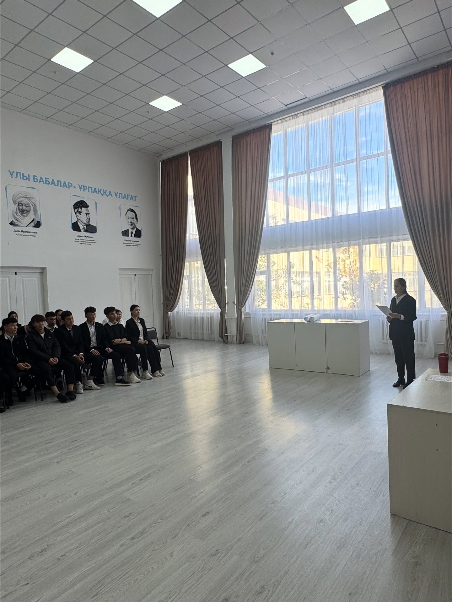 Жиынды мектеп-гимназия директоры Ибраев Бекзат Сағындықұлы ашып, оқушыларға сәттілік тілеп, алдағы ҰБТ мен өмір жолында өз мақсаттарына сеніммен қадам басуға үндеді.