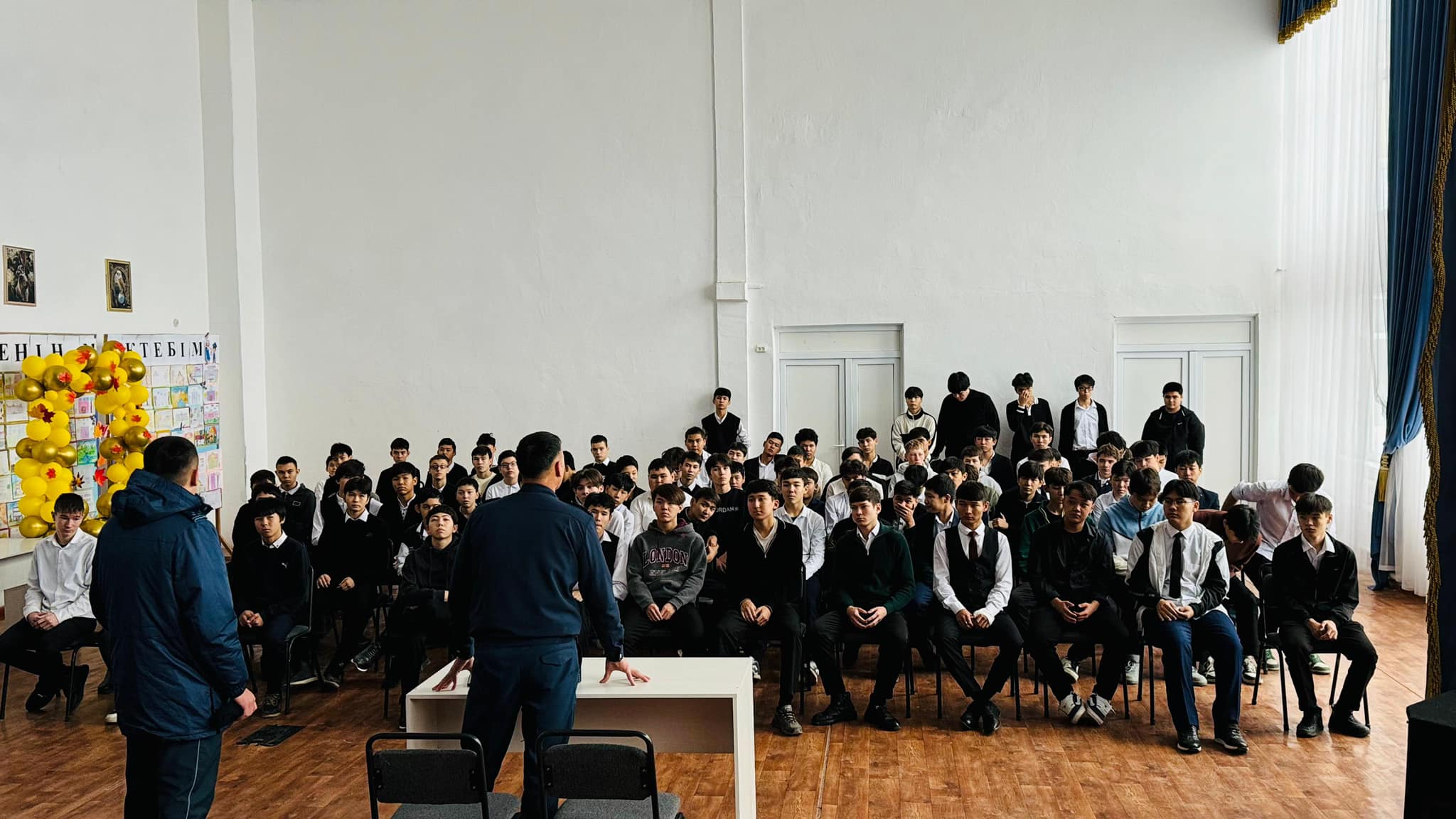 Мектебімізде 6 желтоқсан күні «Жасөспірімдер арасындағы құқық бұзушылықтың,есіріткіге тәуелділіктің, вейптің, уытқұмарлықтың, зорлық-зомбылықтың, жыныстық қолсұғушылықтың, суицидтің, буллингтің, лудомания, бопсалау және жол көлік оқиғаларының алдын алу, ұрлық қылмысы, интернет алаяқтығының алдын алу, түнгі уақытта балалардың заңды өкілінсіз жүрмеуі, жаңа жылдық пиротехникалық заттарды қолданбау» тақырыбында мектеп оқушыларына түсіндірме жұмыстары жүргізілді. ЖПҚБ ЮПБ-ның УПИ-ры қызметкерлері полиция майоры Н.Осипов, полиция аға лейтенанты Е.Жалғас пен мектеп-гимназияның директорының тәрбие ісі жөніндегі орынбасары Э.Ералиева аталған тақырып бойынша балаларға құқықтық түсіндірме жұмысын жүргізіп,слайдтар мен бейнероликтер көрсетіп, ақпараттандырды.