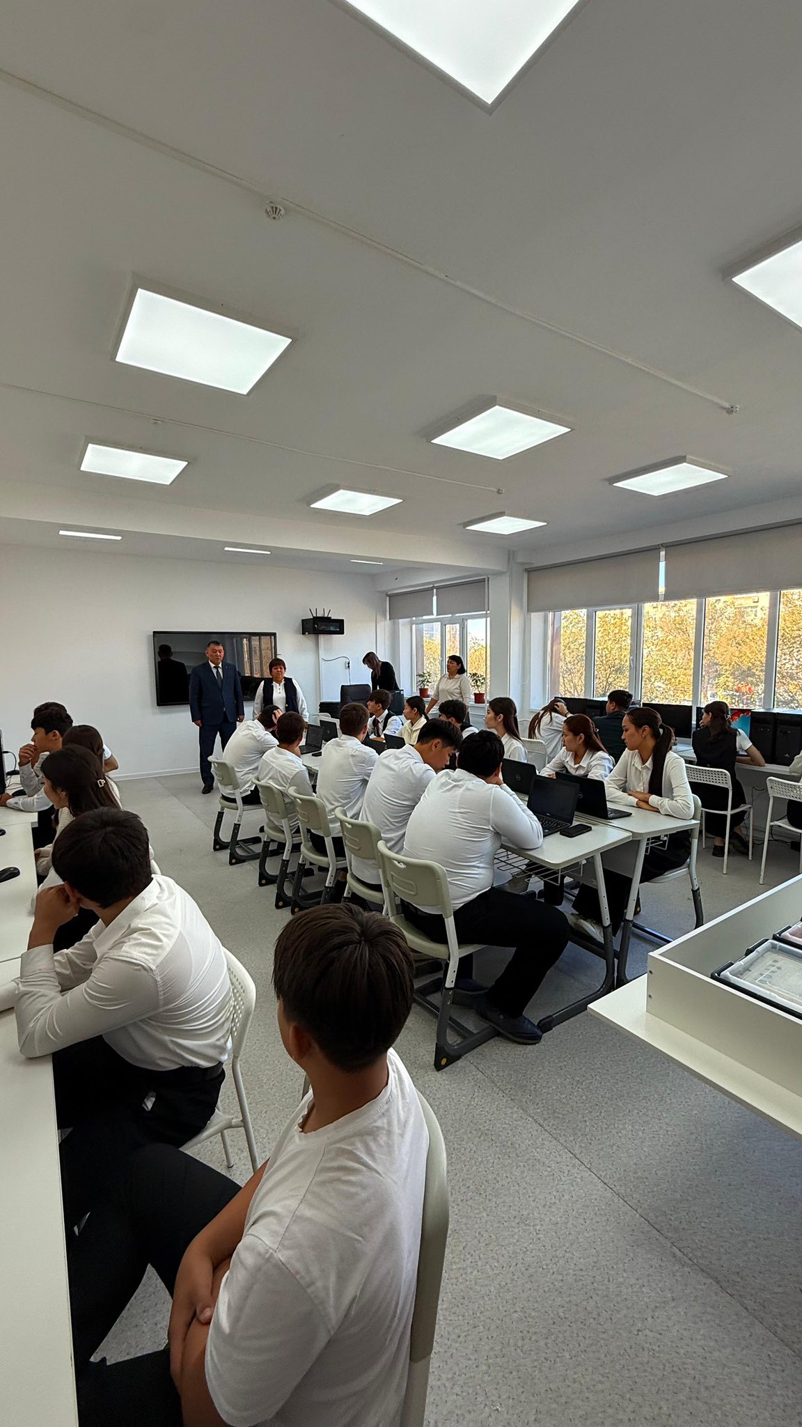 Сынақ басталар алдында мектеп-гимназия директоры Бекзат Сағындықұлы және директордың оқу ісі жөніндегі орынбасары Гүлнар Бакитовна оқушыларға сәттілік тілеп, тапсырмаларды мұқият оқып, ойлап жауап беруге шақырды.