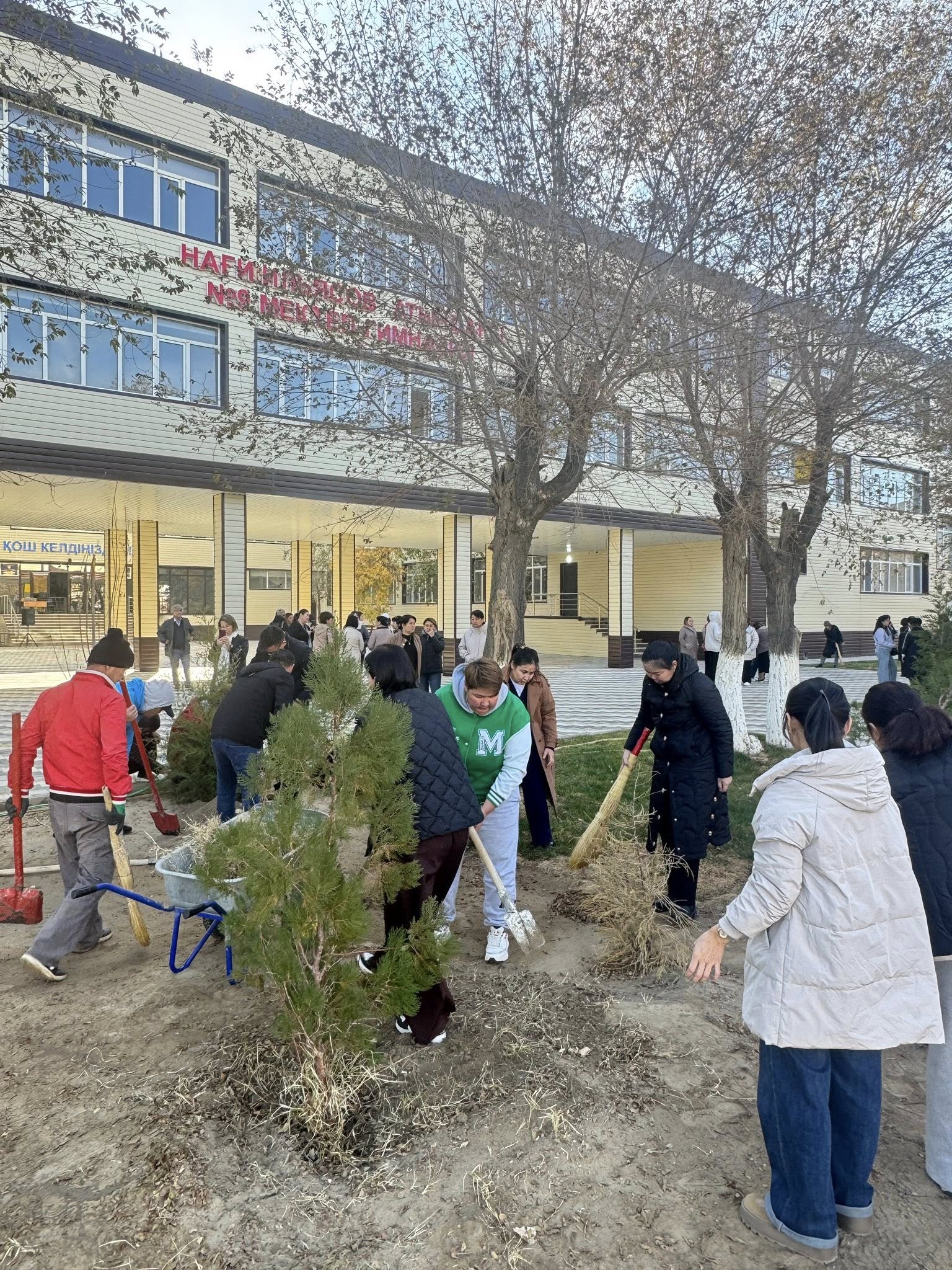 Акция барысында ұстаздар мен қызметкерлер мектеп ауласын тазалап, ағаш көшеттерін отырғызуға белсене атсалысты.